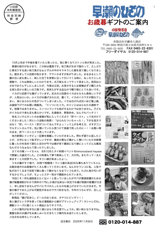 私(社長兼何でも専務)と奥さん(役付き不明)で、切り盛りしています。うちのかみさんのブログはこちらからおいしい!とのお返事が何よりの楽しみです。朝食に干物!もいいと思います。